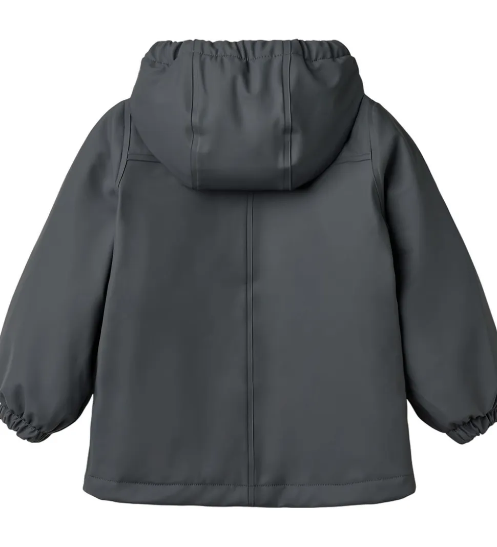 Pæn Wheat regnjakke af PU i ensfarvet, mørk gråblå.