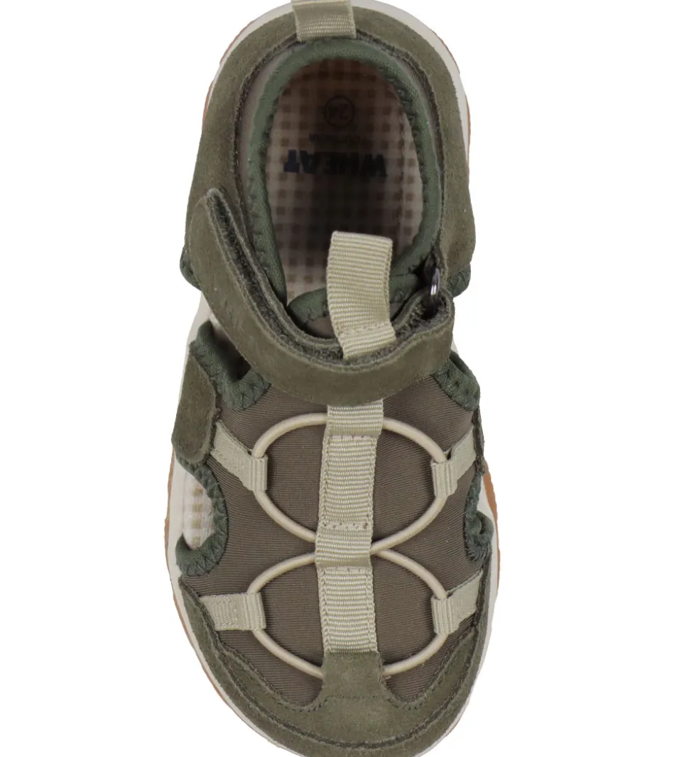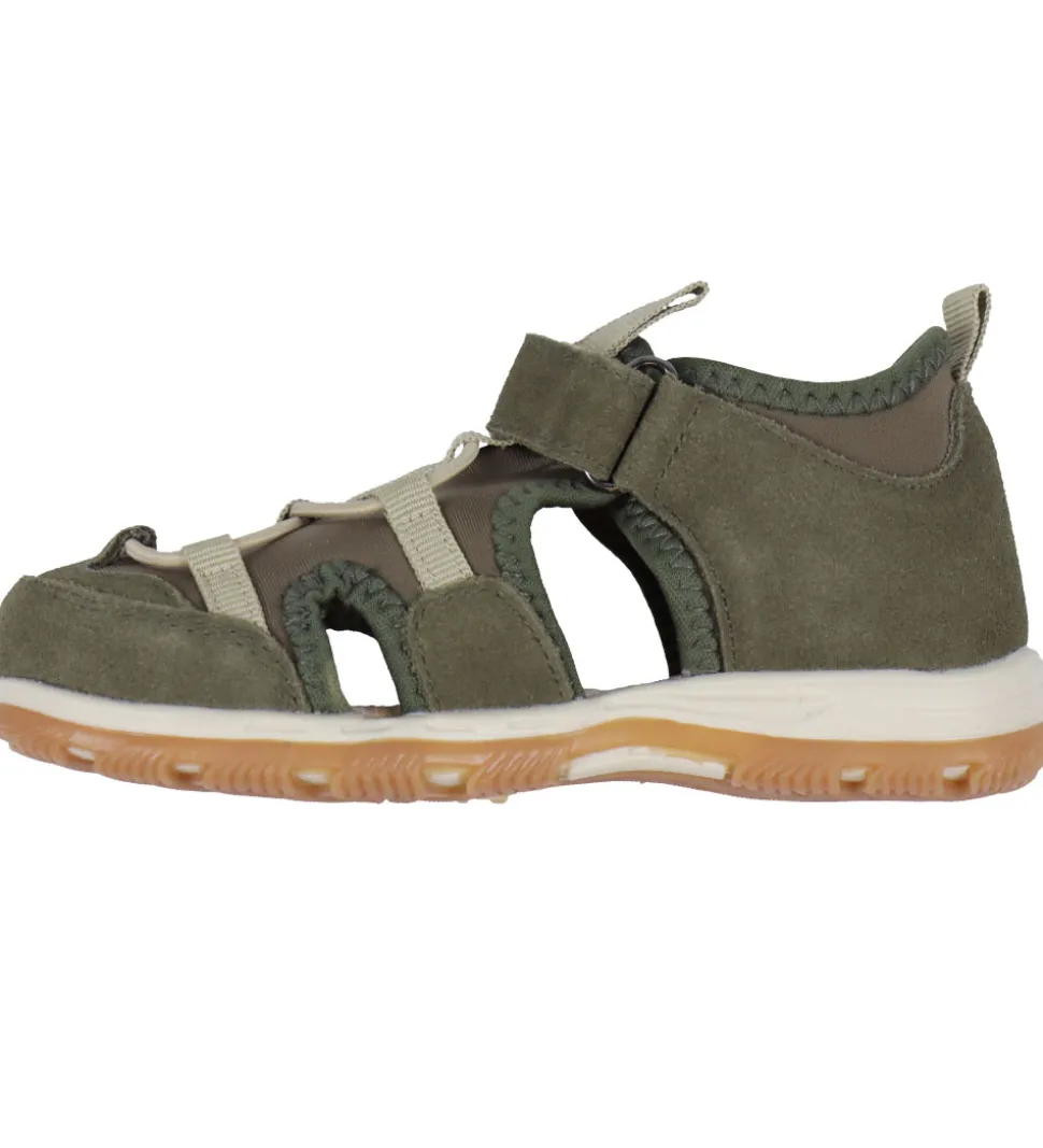 Flotte Wheat sandaler i armygrøn ruskind og neopren med beige detaljer.