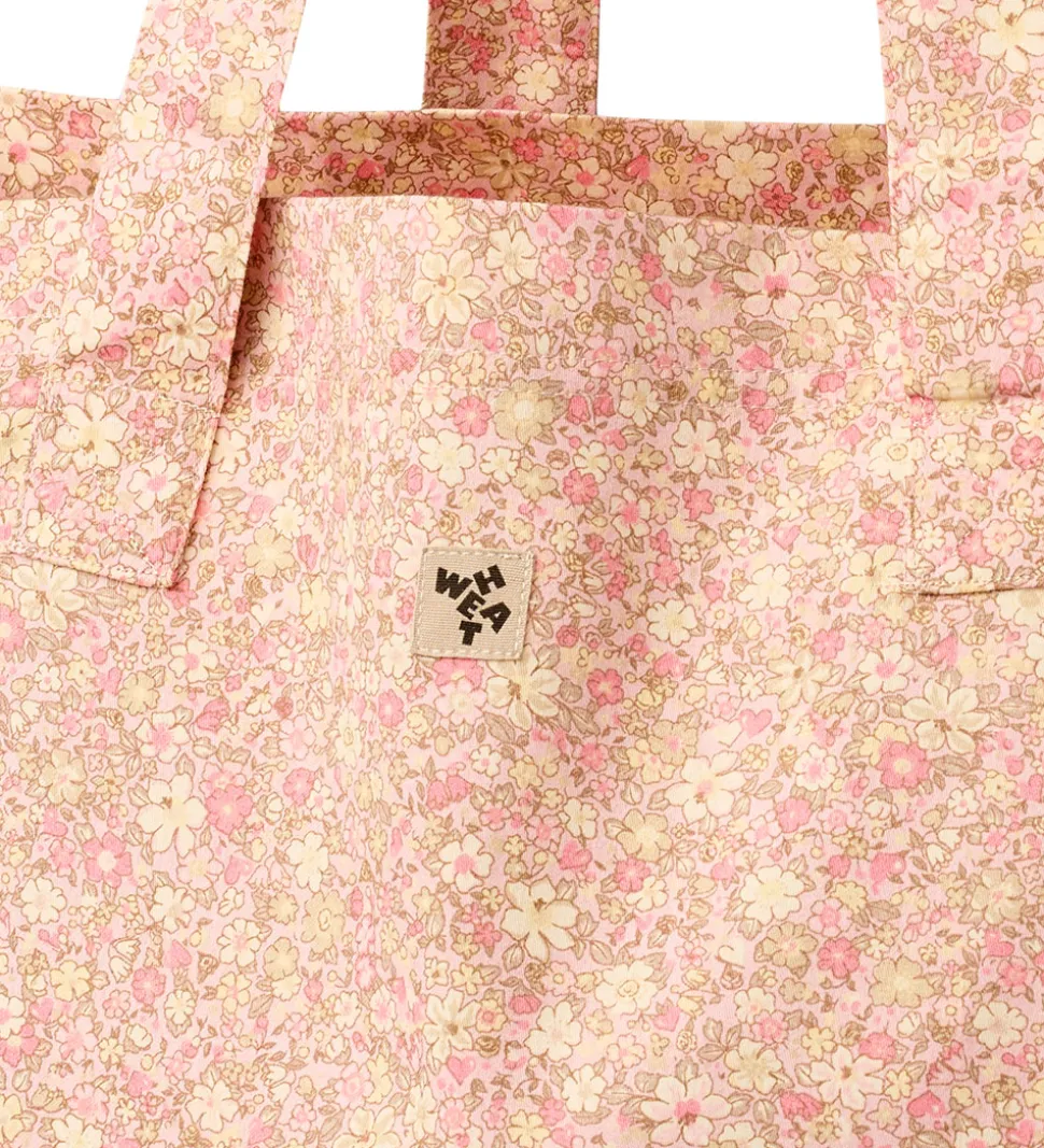 Flot Wheat shopper i en lys, rosa nuance med et smukt blomsterprint. Wheat tasken er rummelig med to lange stropper, der gør den nem at bære over skulderen.