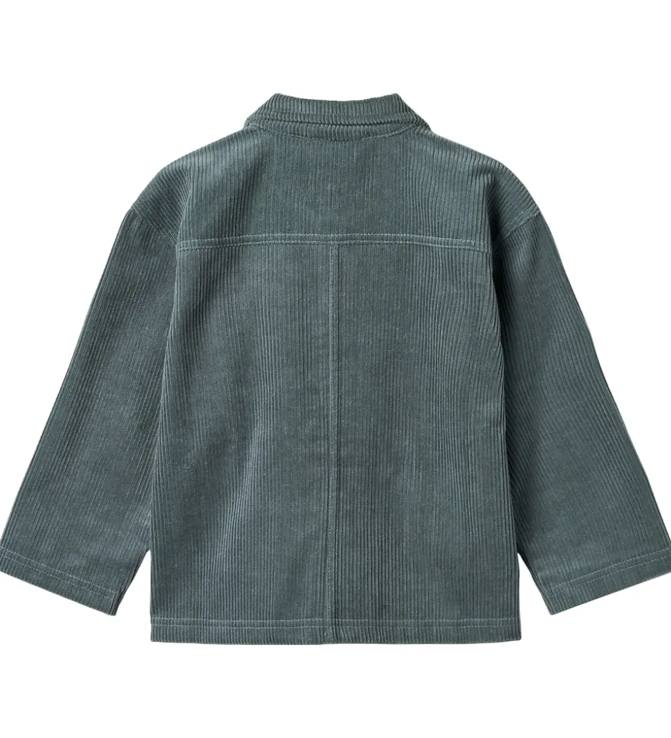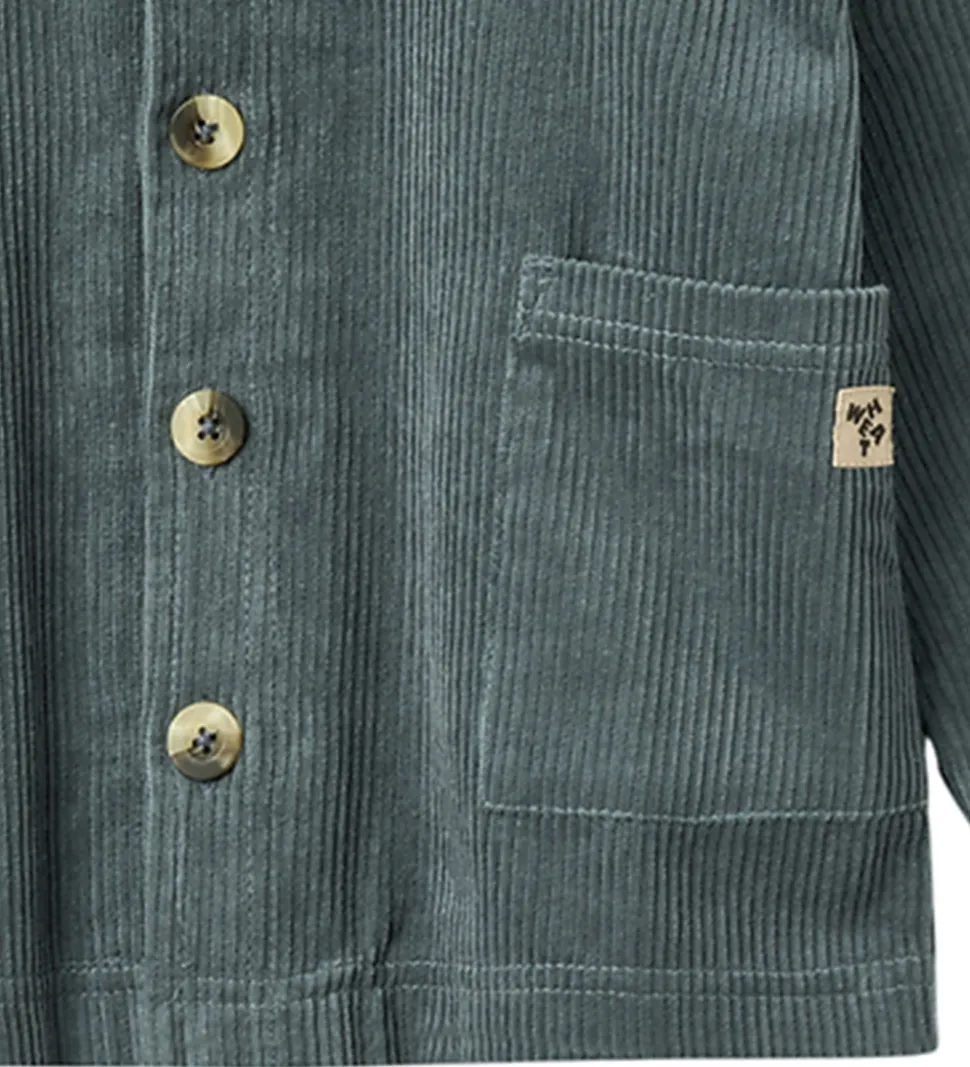 Flot Wheat skjorte i ensfarvet støvet blåt fløjl. Wheat skjorten har lange ærmer og en klassisk krave, der giver et tidløst udtryk. Den lukkes med store knapper, og i siderne sidder der store lommer.