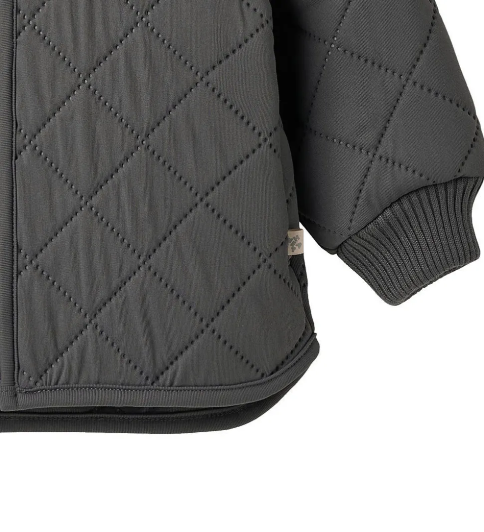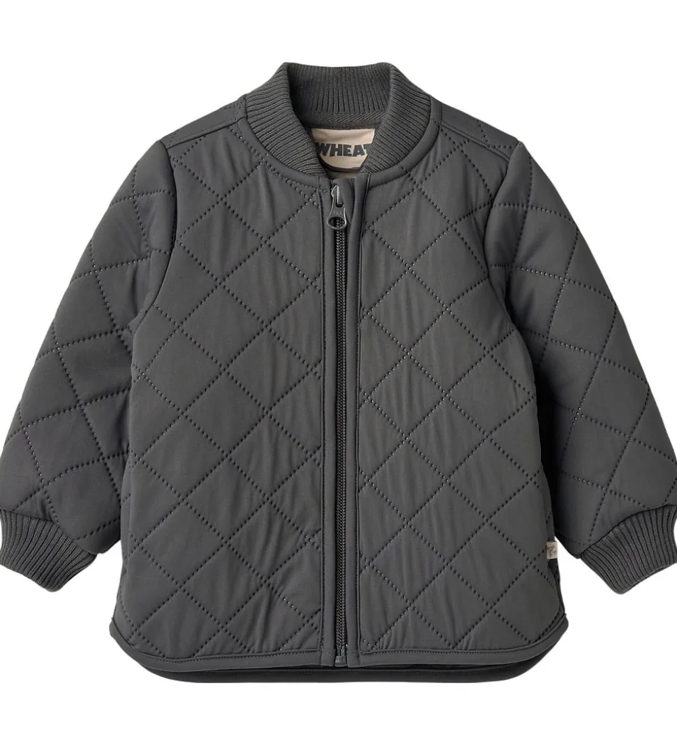 Skøn Wheat termojakke i ensfarvet, mørk koksgrå. Termojakken har en quiltet struktur.