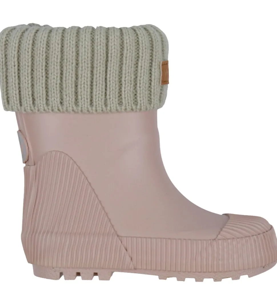 Termostøvlerne er designet med en udtagelig sok, med en strikket kant i beige, som bukkes rundt om skaftet. Sokken er fremstillet af 30% uld og 70% genanvendt polyester, som kan holde fødderne varme i de kolde måneder. Når vejret bliver varmere, forlænges termostøvlernes levetid ved at tage sokken ud. Hermed bliver termostøvlerne til almindelige gummistøvler, som er et nummer større og køligere til den nye sæson.
