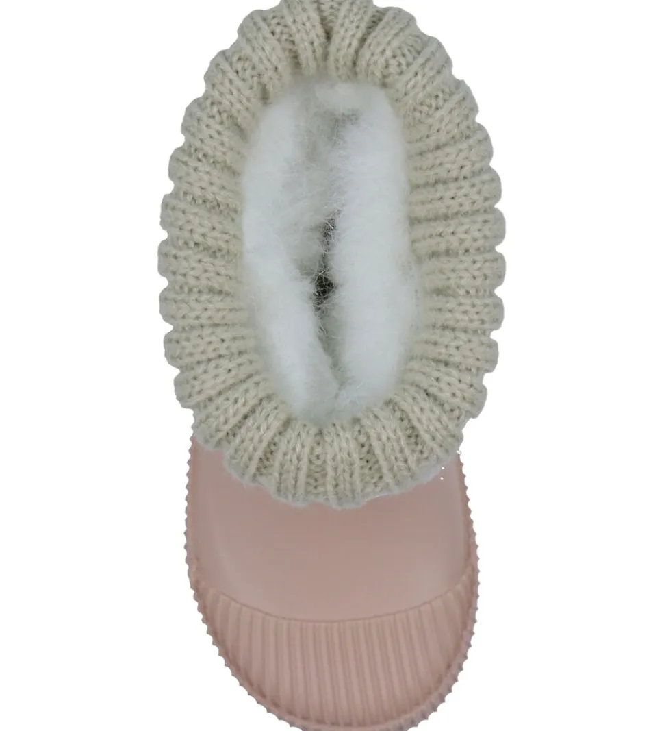 Flotte Wheat termostøvler i rosa med logo på fronten og en refleks bagpå.