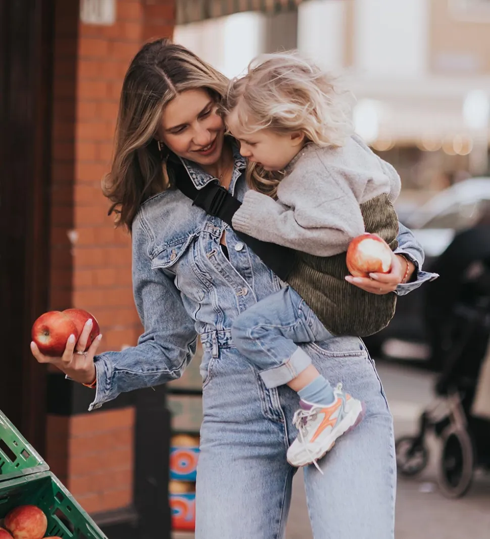 Bæreselen giver bedre støtte, når du bærer barnet, og den hjælper dig til at have hænderne fri, når du har barnet med dig.